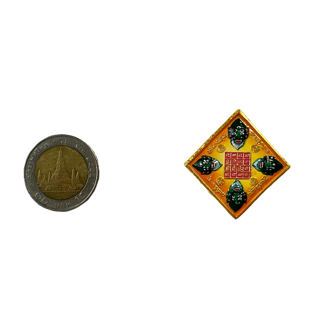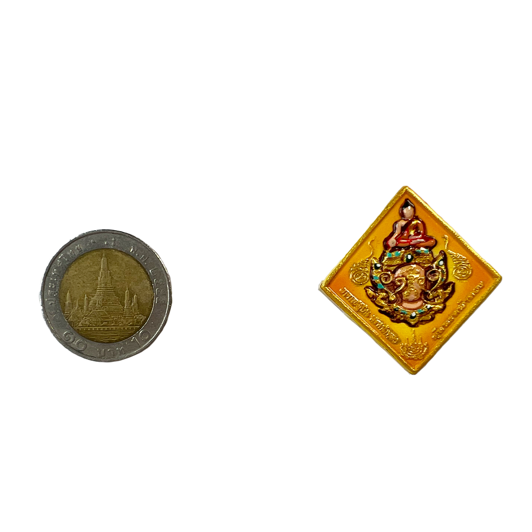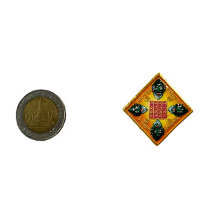 เนื้อวัตถุมงคลโลหะลงยาแดง ขนาด 3.5 x 3.5 x 0.2 ซม.
